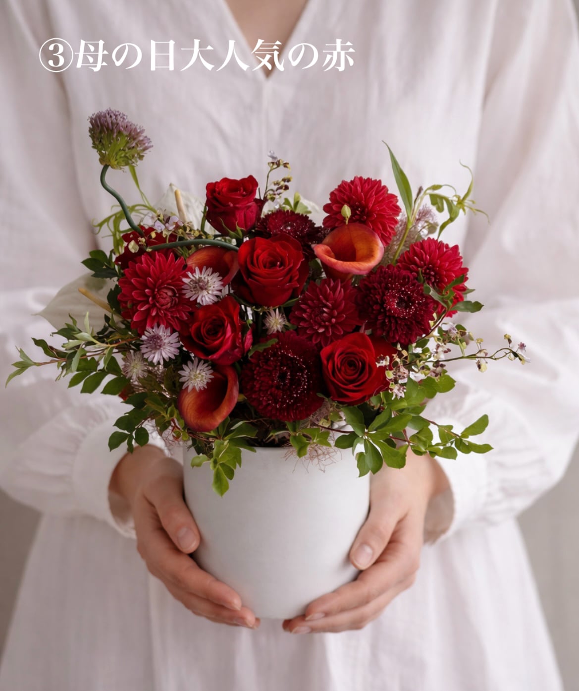 ※母の日は花の流通が不安定なため、細かい花材指定がお受けできませんこと、ご了承下さい。
